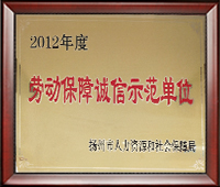 ◇ 榮獲2012年揚(yáng)州市勞動(dòng)保障誠(chéng)信示范單位